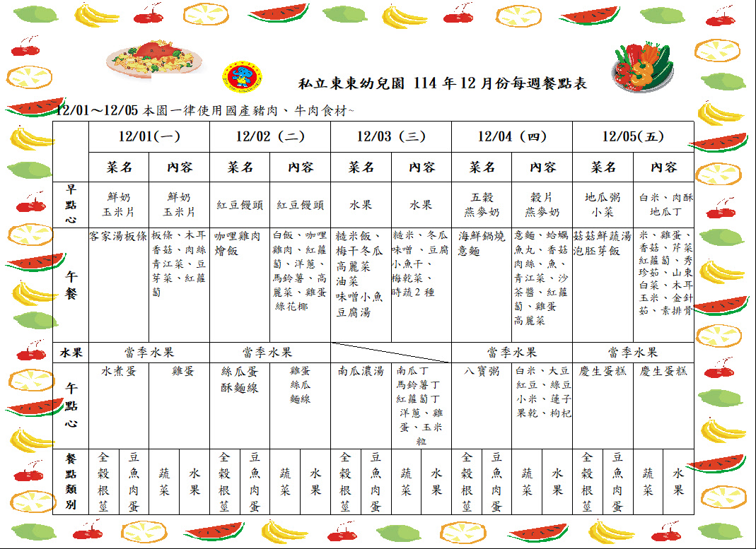 114年12月餐點表5