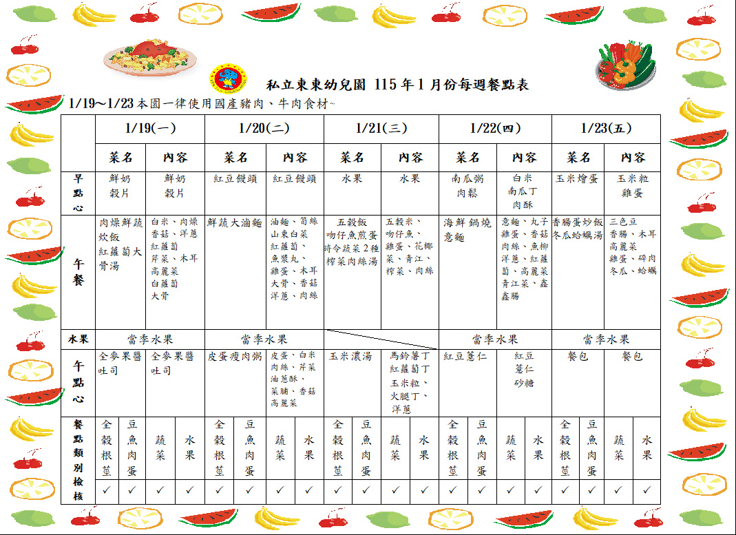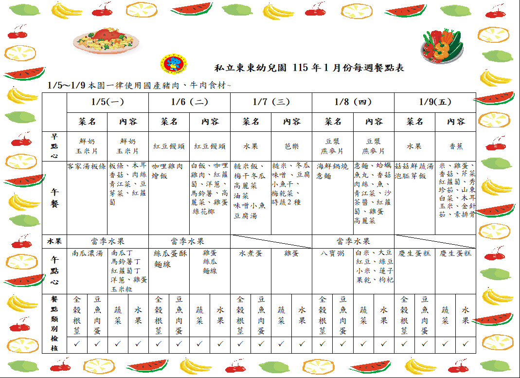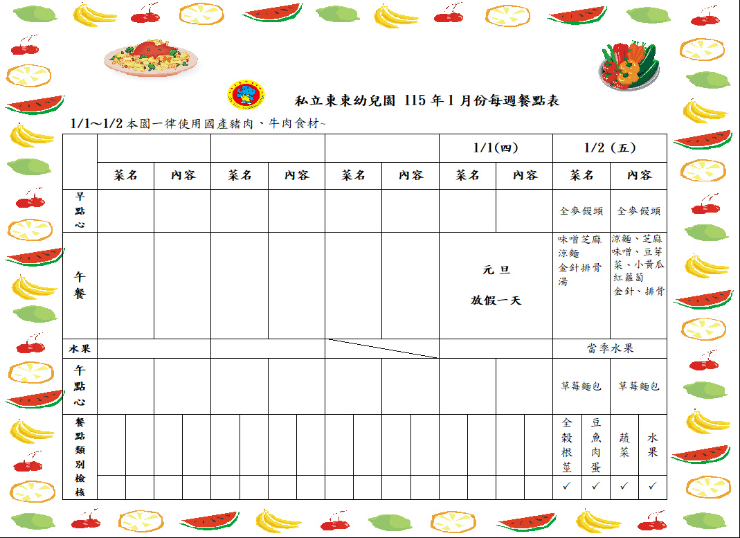 115年1月餐點表5