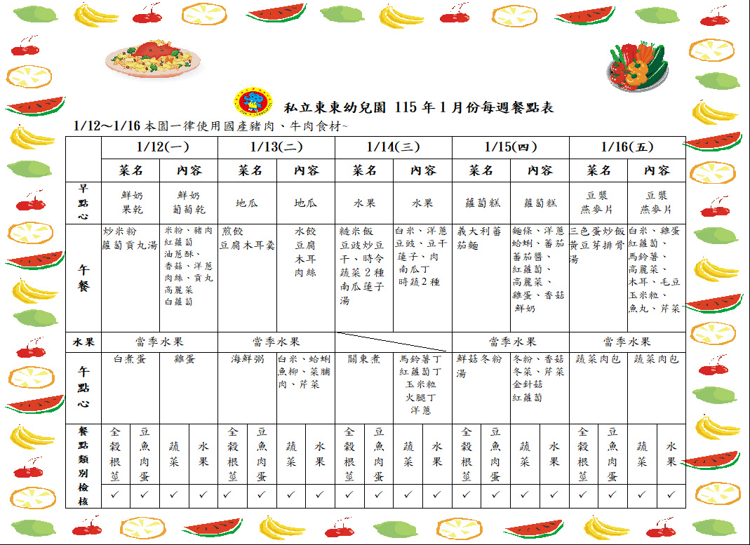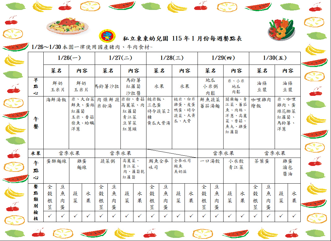 115年1月餐點表4